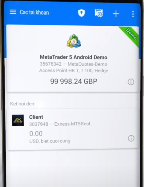 - Bước 7: Sau khi hoàn tất đăng nhập, thông tin tài khoản giao dịch của bạn sẽ được thêm vào khu vực Các Tài khoản. Bạn có thể thêm nhiều tài khoản bằng cách lặp lại quy trình trên bao nhiêu lần tùy ý.