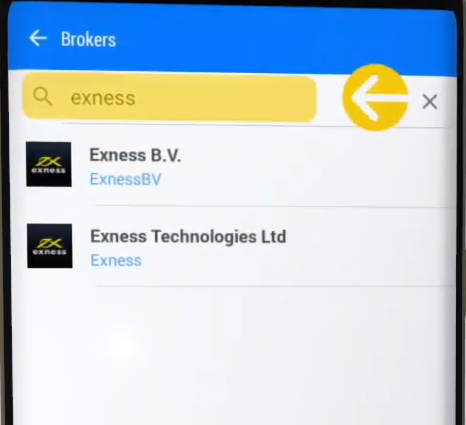- Bước 3: Nhấn vào biểu tượng dấu + và nhập Exness Technologies Ltd vào ô tìm kiếm rồi chọn kết quả này.