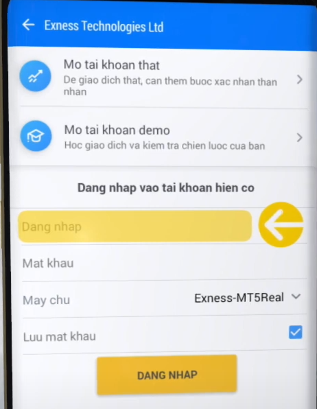 - Bước 4: Nhập thông tin đăng nhập của tài khoản giao dịch đó nếu được nhắc.