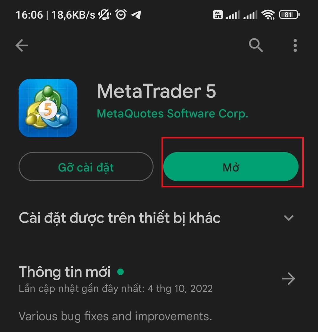 - Bước 1: Khởi động MT5 trên điện thoại của bạn.