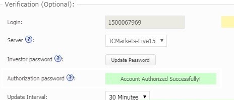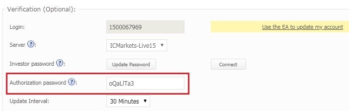 Authorization password sẽ chính là phần mật khẩu mà nền tảng Myfxbook tạo cho các bạn. Để tài khoản đầy đủ yếu tố cần để đạt được tick xác thực, các bạn phải đổi mật khẩu tự động thành mật khẩu cá nhân để tránh những rủi ro không đáng có.