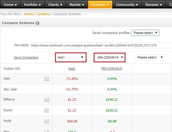 Ngoài ra, tại mục Systems này, các bạn còn được so sánh hệ thống giao dịch các tài khoản của mình.