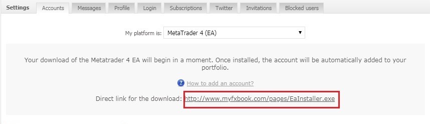 Ở bước này, các bạn hãy bấm vào đường link để tải file cài đặt EA Myfxbook về máy.