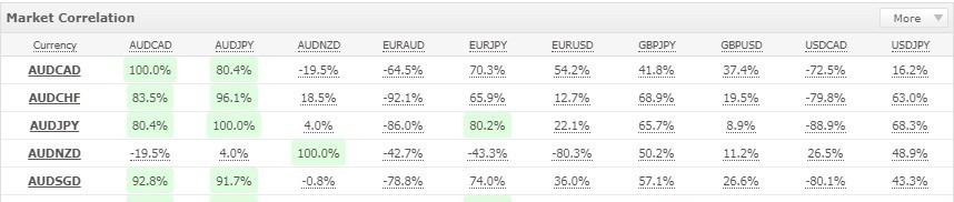 Correlation (sự tương quan): Đây là một công cụ được đánh giá là khá hữu ích cho các trader. Sự tương quan được biểu thị ở dạng ma trận và được chứng minh là chỉ ra được mối quan hệ biến động cùng chiều hay ngược chiều và mức độ tương quan giữa các cặp forex với nhau hay giữa 2 loại tài sản bất kỳ trên thị trường. Dựa vào số liệu mà ma trận cung cấp, các nhà đầu tư hoàn toàn có thể dự đoán xu hướng biến động của một loại tài sản dựa trên thông số biến động của một loại tài sản khác.