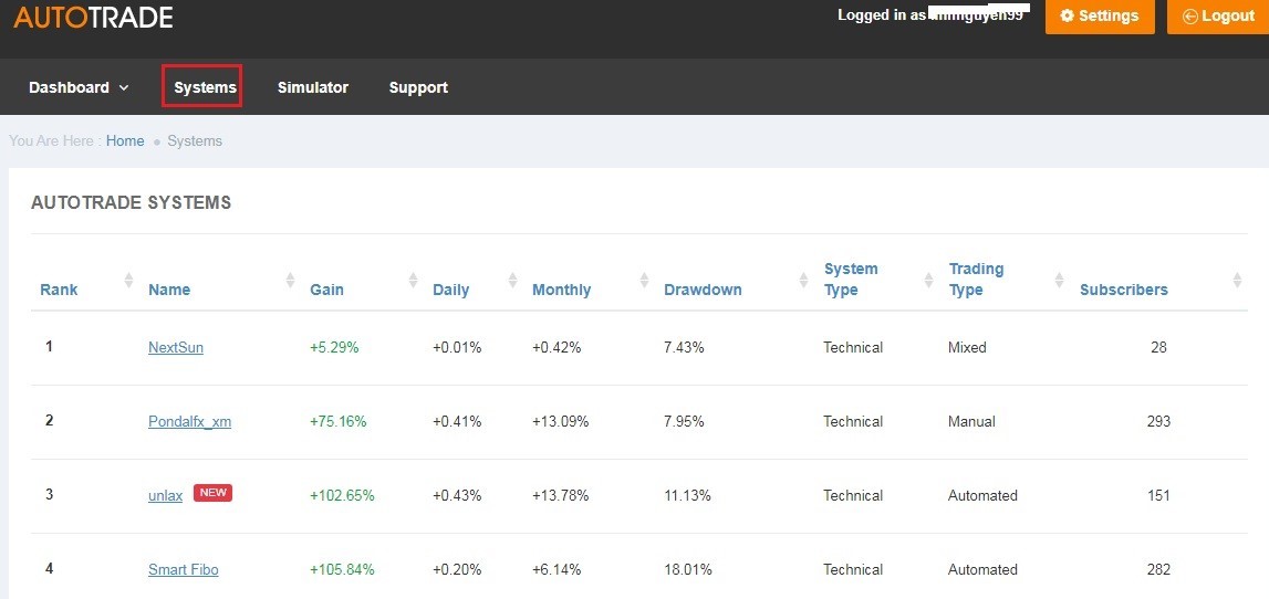 Để xem được hệ thống giao dịch của trader khác, các bạn chọn vào mục Systems, rồi chọn Most Popular.