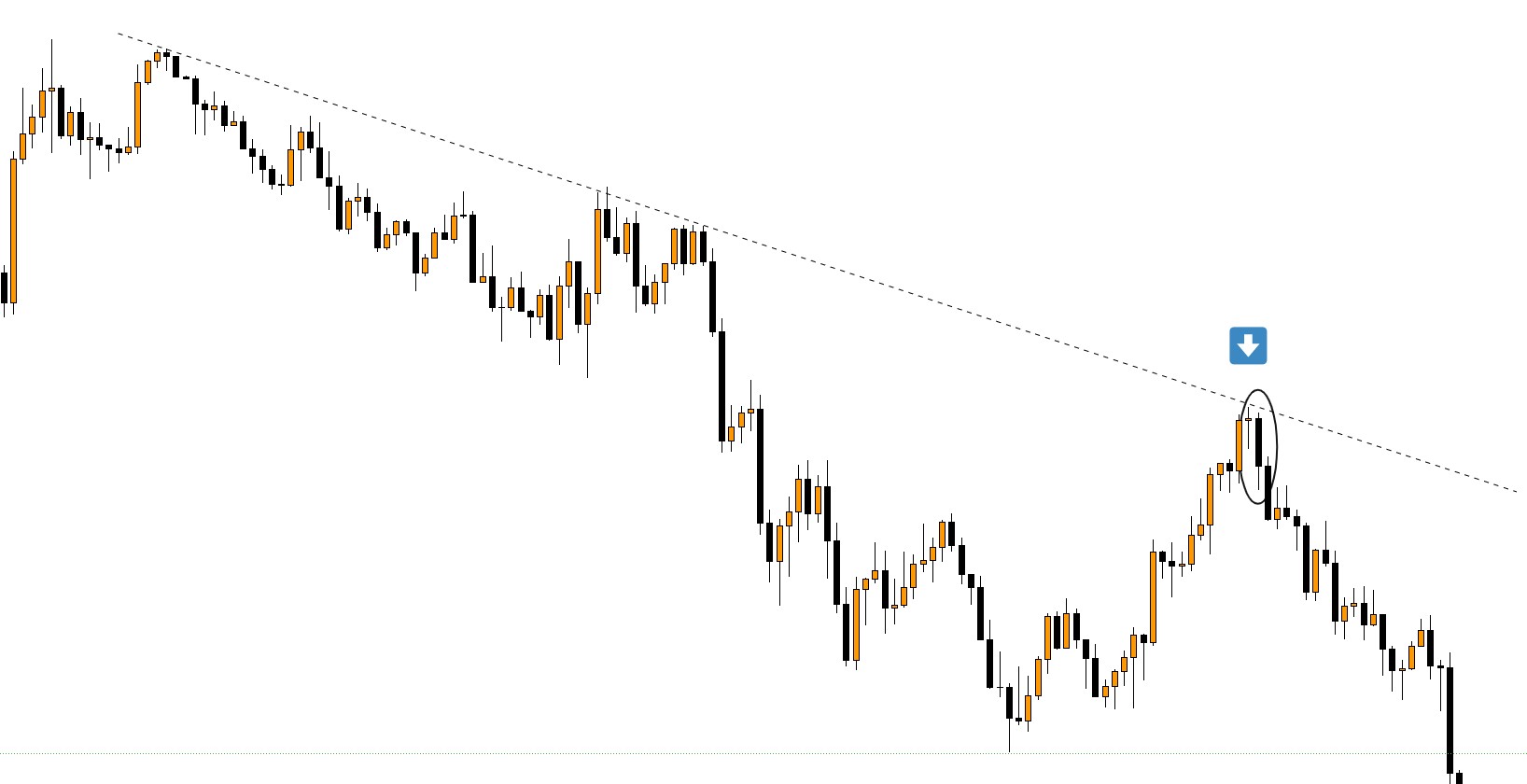 - Xác định được một mô hình nến nhấn chìm giảm khi giá chạm vào đường trend line.