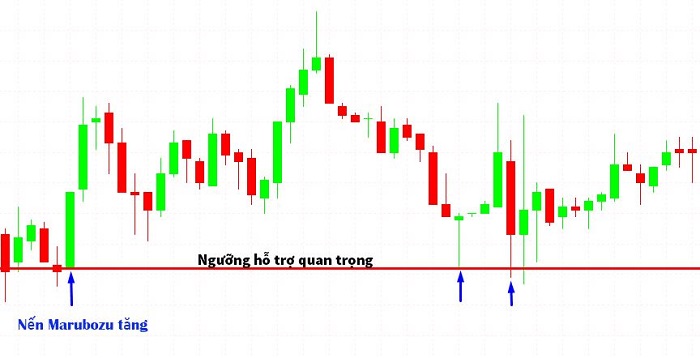 Nến Marubozu xuất hiện ở ngưỡng hỗ trợ (Nguồn: Internet)
