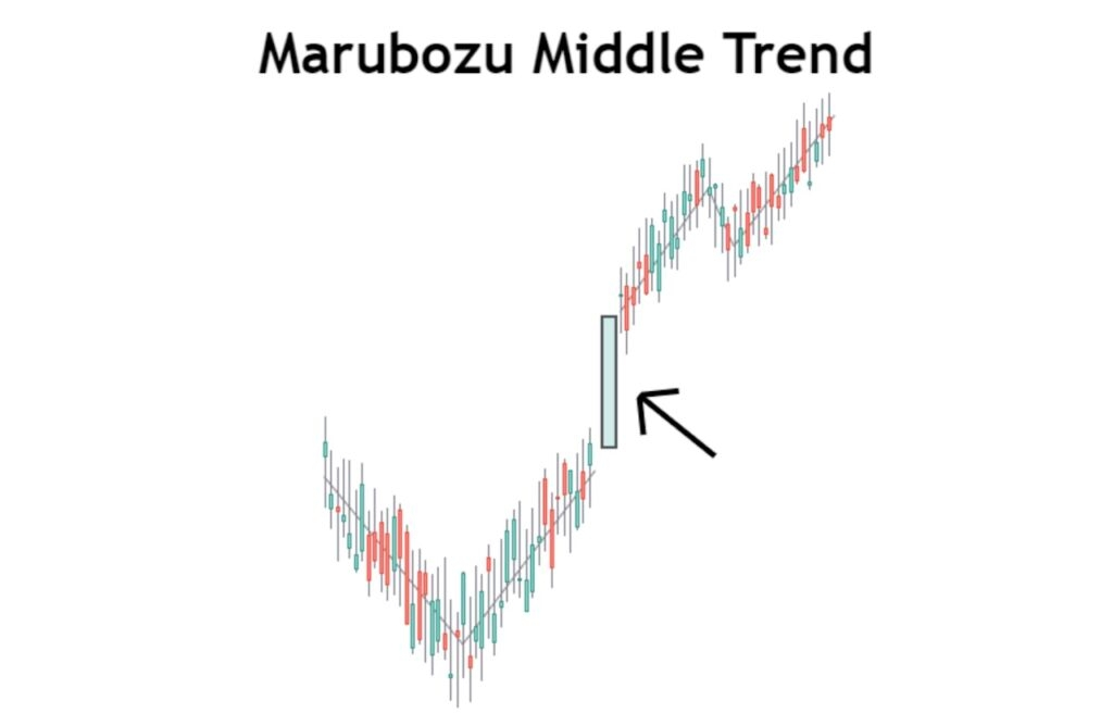 Sau một thời gian, khi giá đã có sự breakout rõ ràng, các trader duy trì xu hướng cũ có hành động từ bỏ và đuổi theo thị trường. Lúc này, cung của người mua và người bán lệch nhau, nên xu hướng ngày càng mạnh mẽ. Mô hình nến Marubozu sẽ thường được tìm thấy tại đoạn giữa của trend trading.