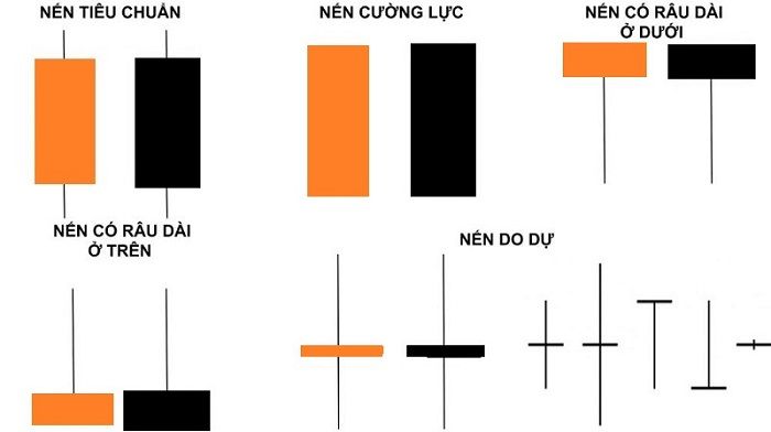 Dựa trên cấu tạo nến, nến đơn là dạng nến đơn giản nhất. Trong quá trình giao dịch, từ một nến tiêu chuẩn sẽ sinh ra các mẫu nến khác, bao gồm: