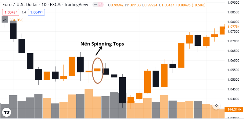 Hình minh họa nến Spinning Tops trên biểu đồ nến Nhật cặp EUR/USD (Nguồn: Tradingview)