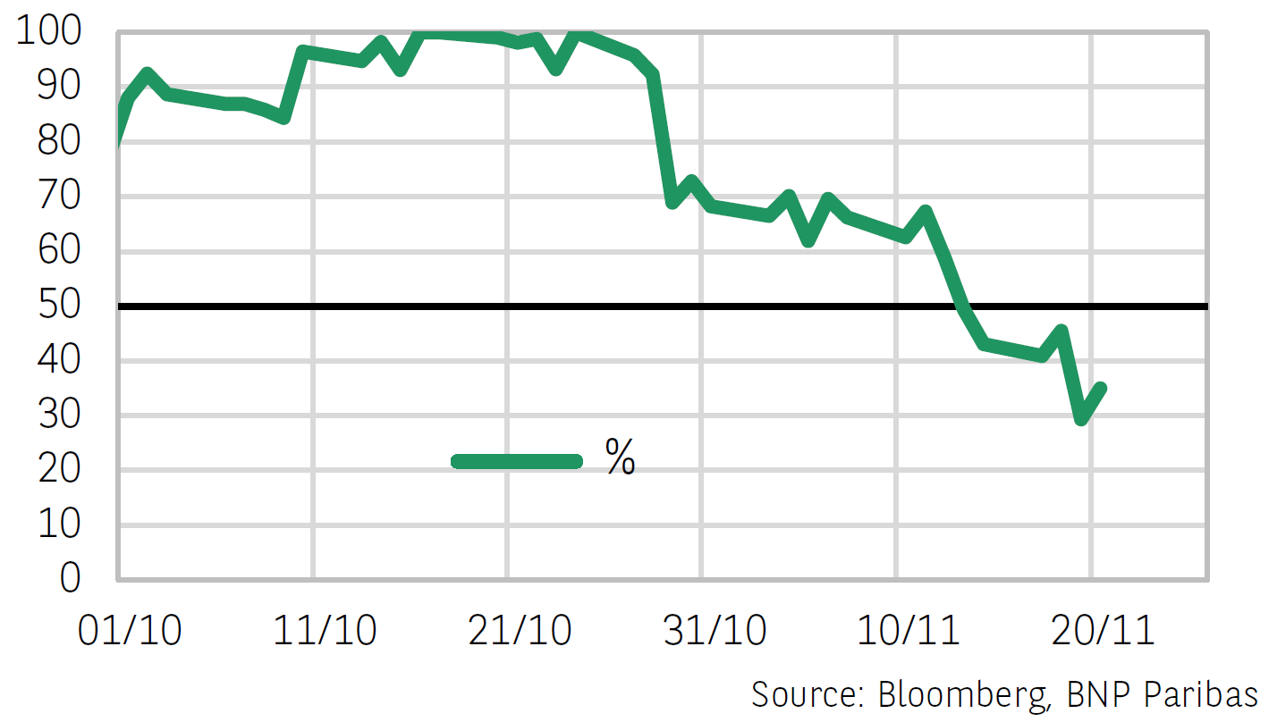 Biểu đồ 2: Xác suất ngụ ý cắt giảm ít nhất 25 điểm cơ bản tại cuộc họp FOMC tháng 12