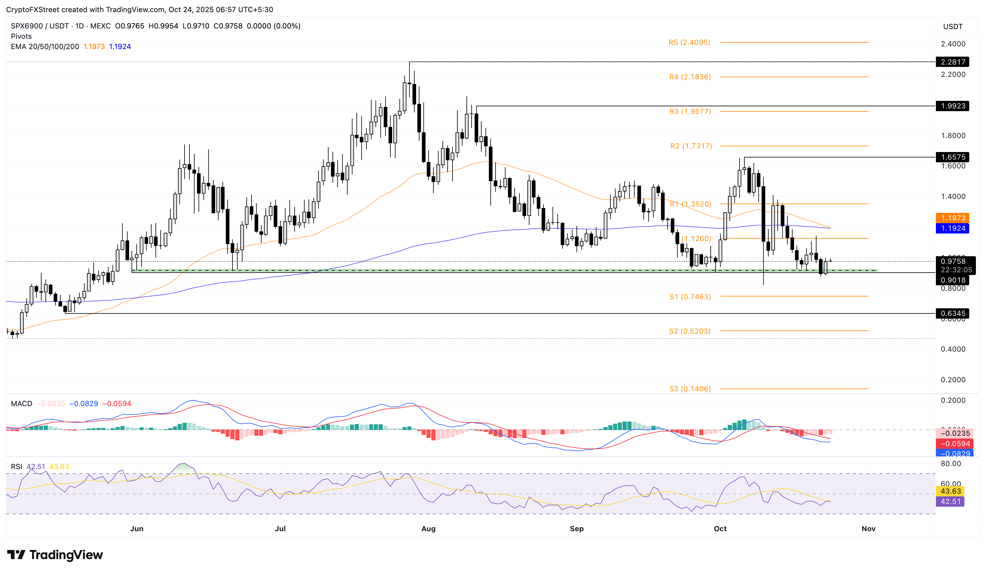 SPX6900 đang chật vật lấy lại ngưỡng tâm lý 1 đô la mặc dù đã tăng 9% vào thứ Năm từ vùng cầu 0,9018 đô la. Tại thời điểm viết bài, SPX đang giao dịch trên 0,9700 đô la, duy trì mức tăng của thứ Năm.
