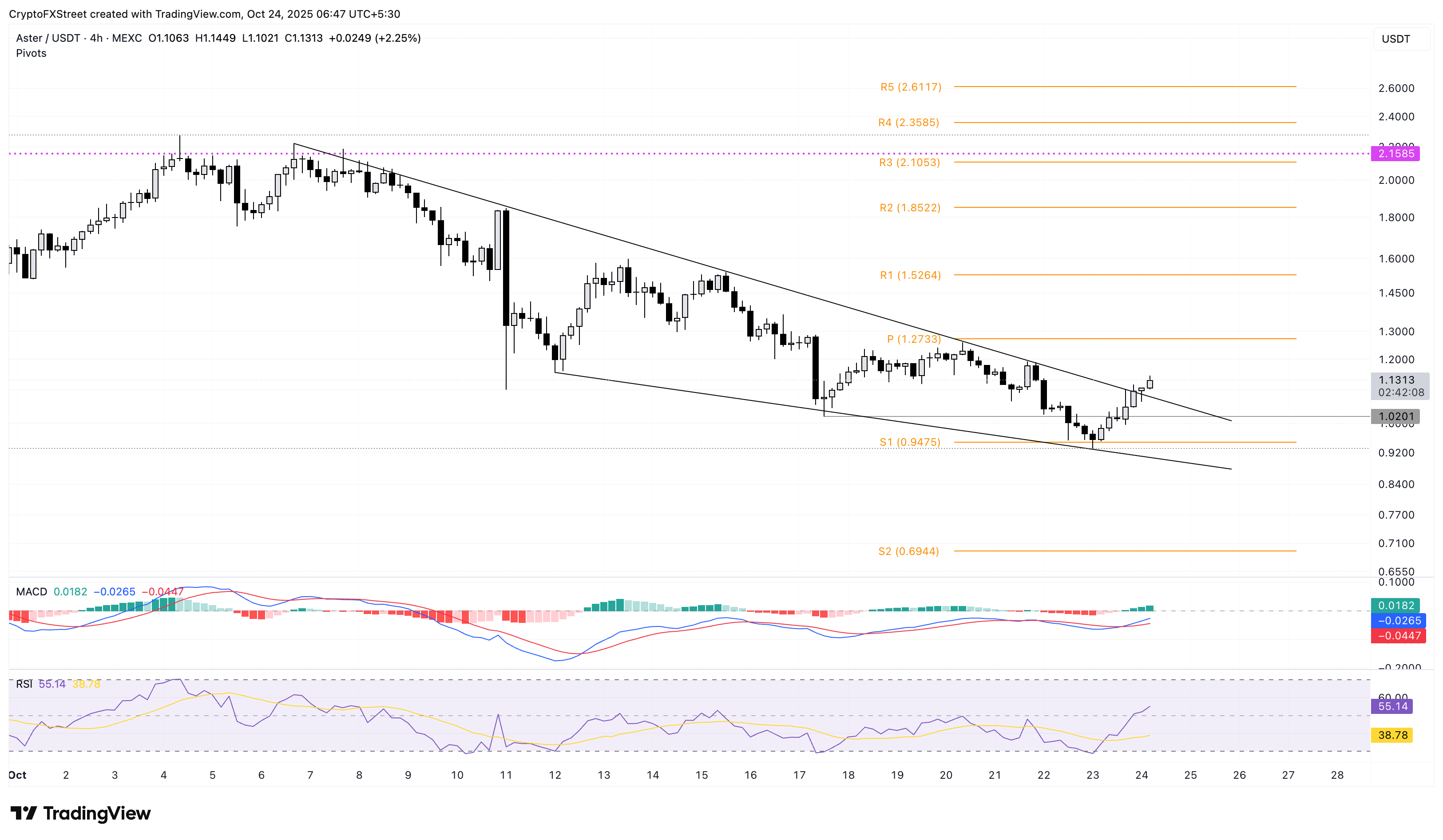 Điểm trục trung tâm ở mức 1,2733 đô la có thể đóng vai trò là ngưỡng kháng cự ngay lập tức cho đợt tăng giá đột phá của ASTER.
