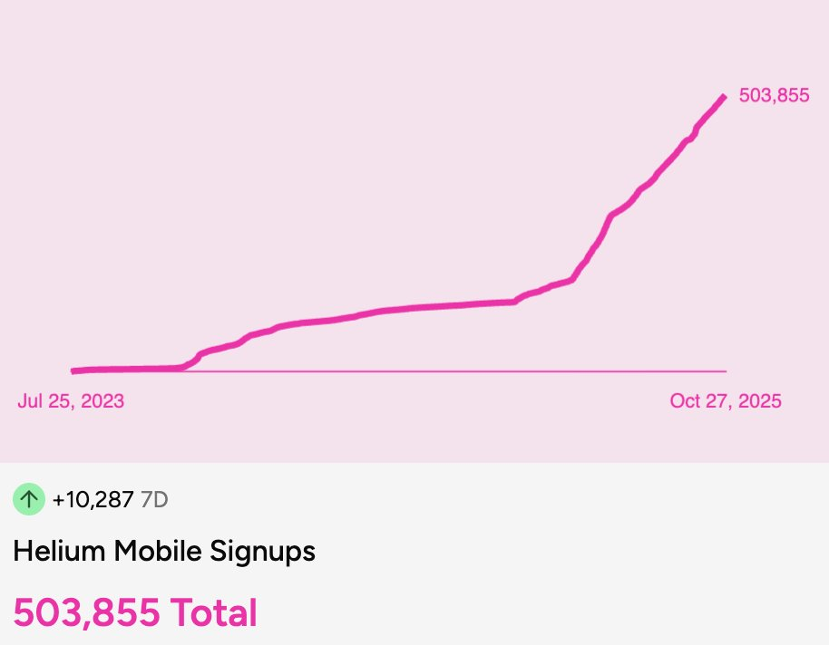 Để chứng minh cho sự gia tăng này, số lượng người đăng ký sử dụng Helium trên thiết bị di động đã chính thức đạt mốc 500.000, cho thấy DePIN đang được áp dụng rộng rãi.