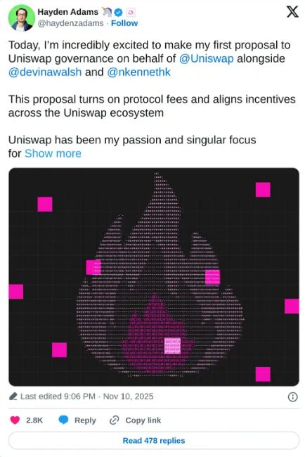 Đề xuất quản trị mới của Uniswap, nhằm mục đích kích hoạt phí giao thức và sử dụng số phí thu được để đốt token UNI, tương tự như Hyperliquid (HYPE), vốn sử dụng doanh thu để giảm nguồn cung thông qua việc mua lại token . 100 triệu token bổ sung từ kho bạc Uniswap sẽ được đốt, đại diện cho số token đáng lẽ đã bị đốt nếu phí giao thức được tích hợp khi ra mắt token.