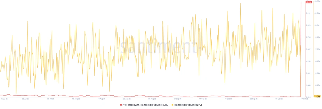 Tỷ lệ NVT của Litecoin. Nguồn: Santiment.