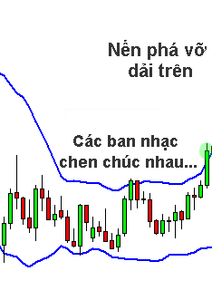 Nếu các nến bắt đầu bùng phát trên dải TRÊN, thì động thái thường sẽ tiếp tục đi LÊN.
