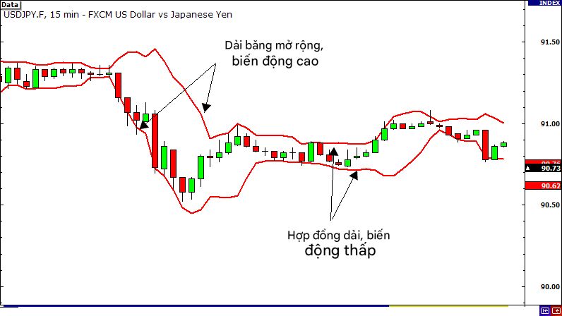 Khi các dải mở rộng, nó cho chúng ta biết rằng độ biến động đang CAO.