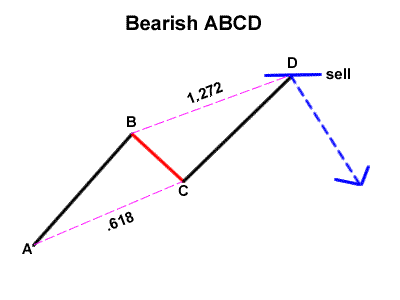 Nếu bạn sử dụng công cụ hồi giá Fibonacci trên chân AB, sự hồi giá BC nên đạt mức 0.618. Tiếp theo, đường CD nên là sự mở rộng Fibonacci 1.272 của BC.
