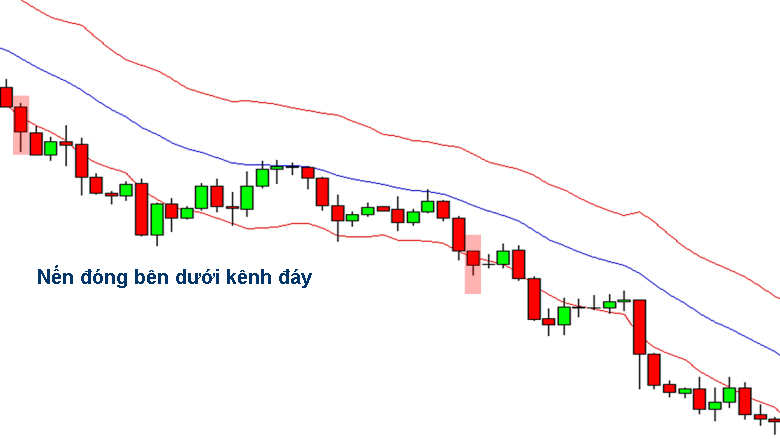 Trong một XU HƯỚNG GIẢM, hành động giá thường nằm trong NỬA DƯỚI của kênh, tìm kiếm kháng cự tại dòng giữa và hỗ trợ tại dòng dưới.