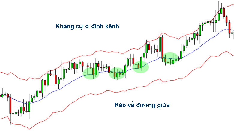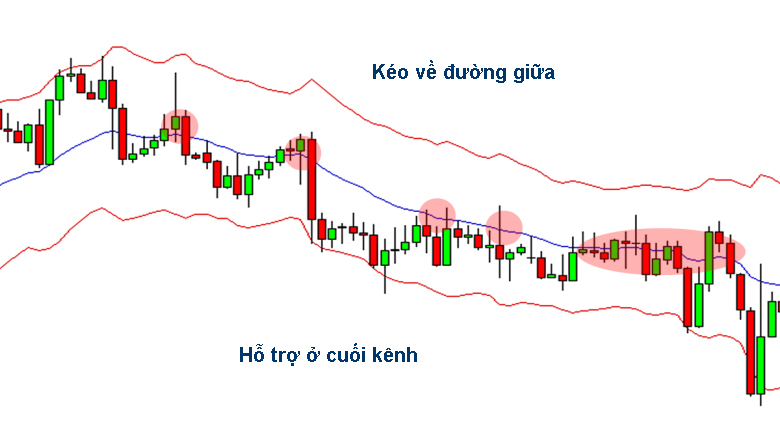 - Các dải trên và dưới hoạt động như các mức kháng cự và hỗ trợ di chuyển.