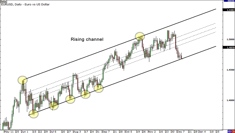 Một cách khác để phát hiện cơ hội phá vỡ là vẽ kênh xu hướng.