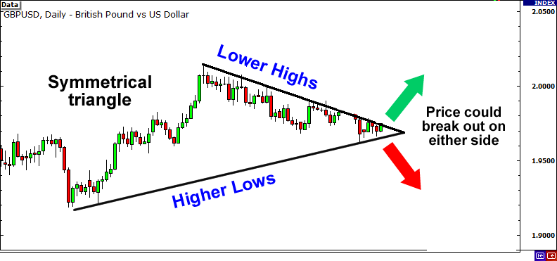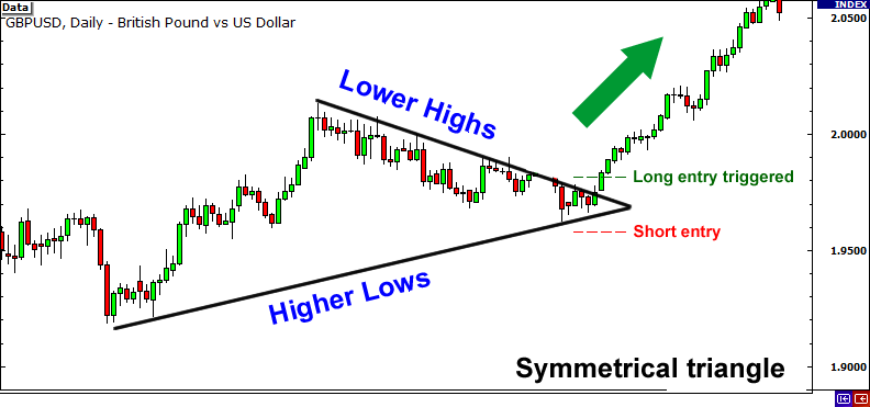 Trong trường hợp tam giác đối xứng, bạn muốn định vị bản thân để sẵn sàng cho cả sự phá vỡ lên phía trên hoặc xuống phía dưới.