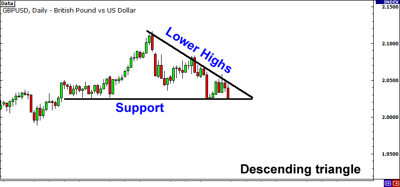 Tam giác giảm thường phá vỡ xuống phía dưới. Vì vậy, khi bạn nghĩ đến tam giác giảm, hãy nghĩ đến mụn trên cằm.