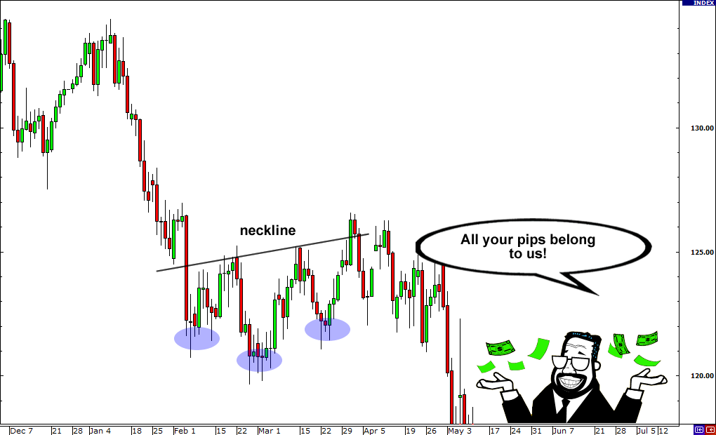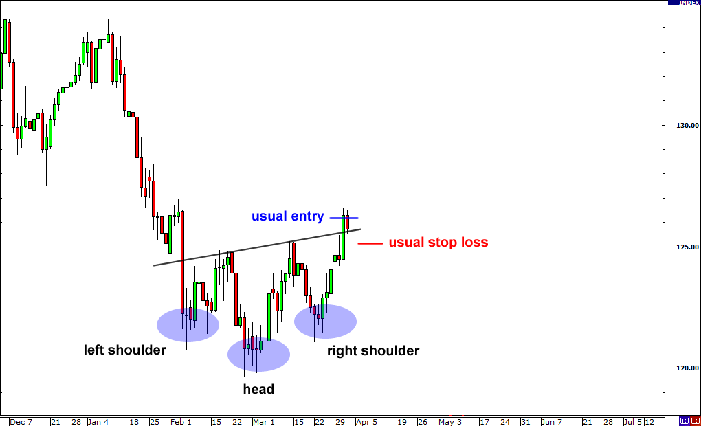 Trong mô hình đầu và vai, bạn có thể giả định rằng cú phá vỡ đầu tiên có xu hướng là giả.
