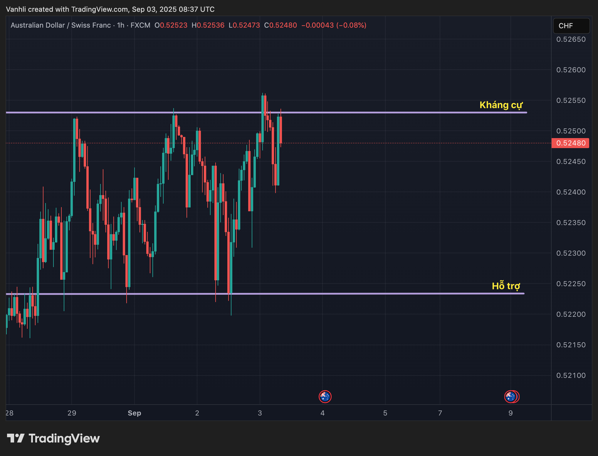 Phân tích AUD/CHF 03/09/2025: Áp lực giảm từ AUD và sức mạnh trú ẩn của CHF