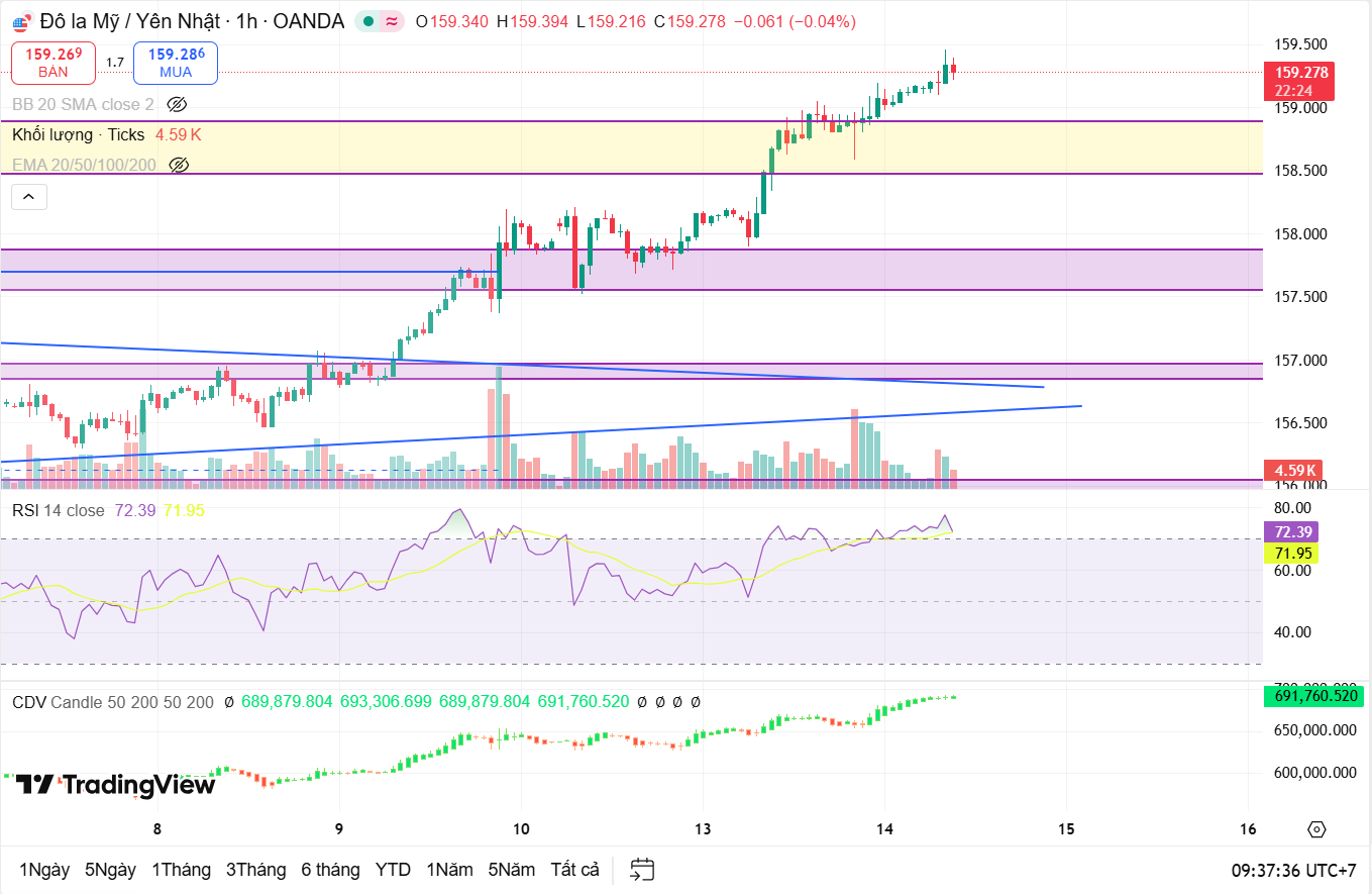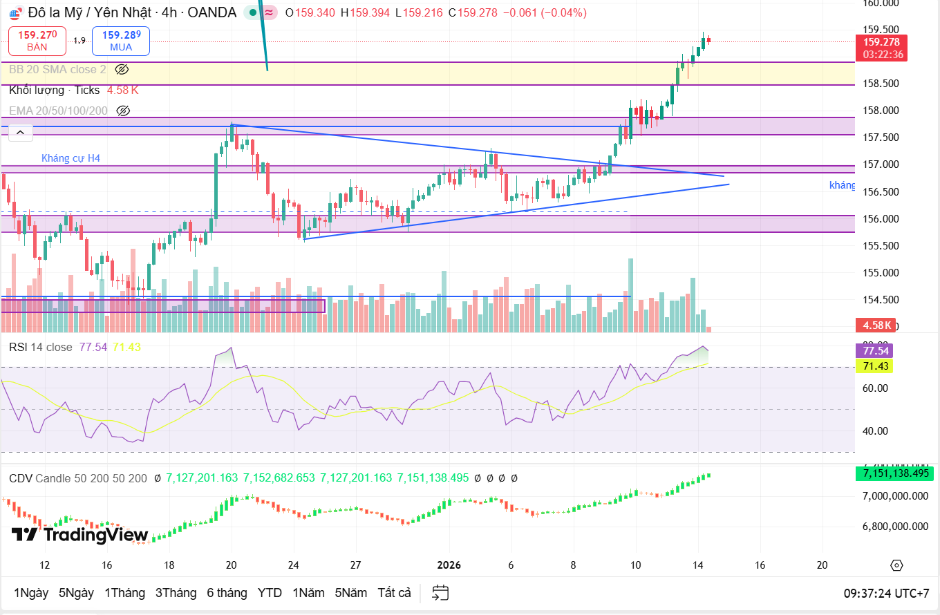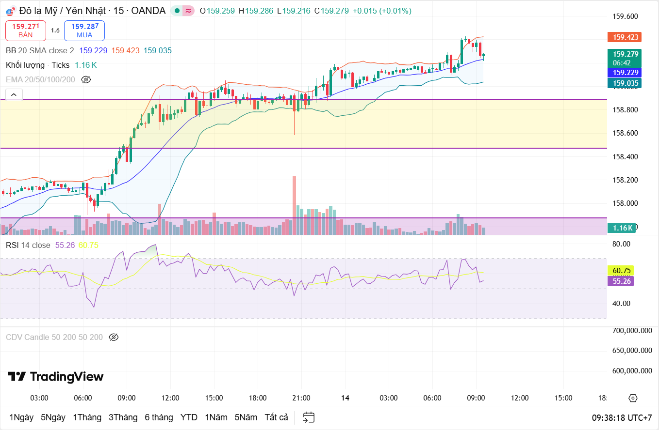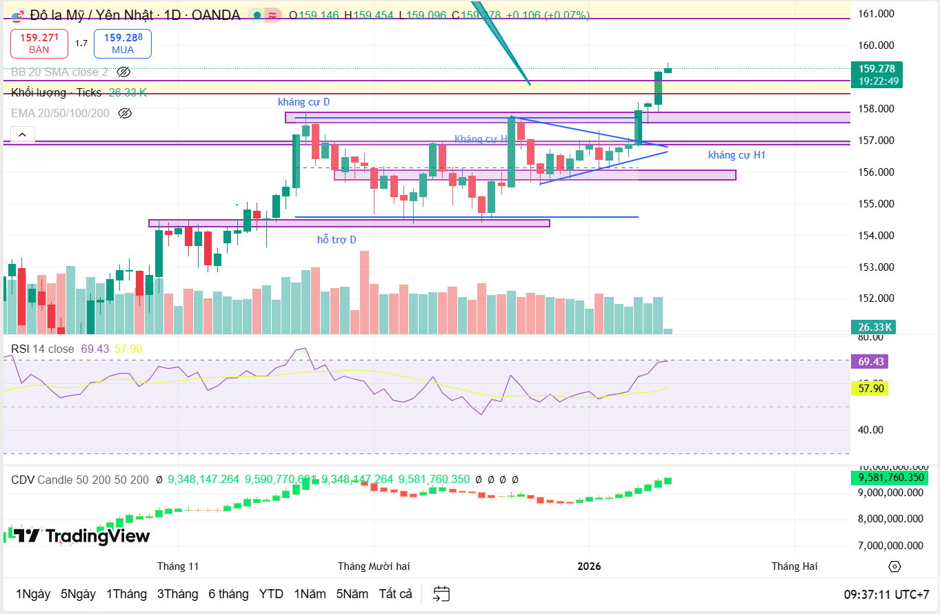 Tuy nhiên, cần đặc biệt lưu ý vùng 159.5–160, khi đây không chỉ là mốc tâm lý quan trọng mà còn là khu vực có khả năng kích hoạt các tín hiệu đảo chiều ngắn hạn do áp lực chốt lời gia tăng. Trong kịch bản cực đoan hơn, vùng giá này cũng có thể trở thành ngưỡng nhạy cảm đối với hành động can thiệp bằng lời nói hoặc thực tế từ BoJ, nhất là nếu đà tăng diễn ra quá nhanh và thiếu nhịp điều chỉnh.