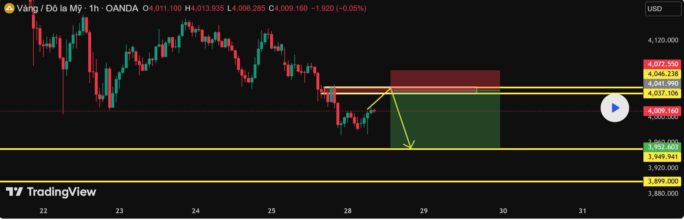 Vùng canh Sell: 4.037 – 4.046