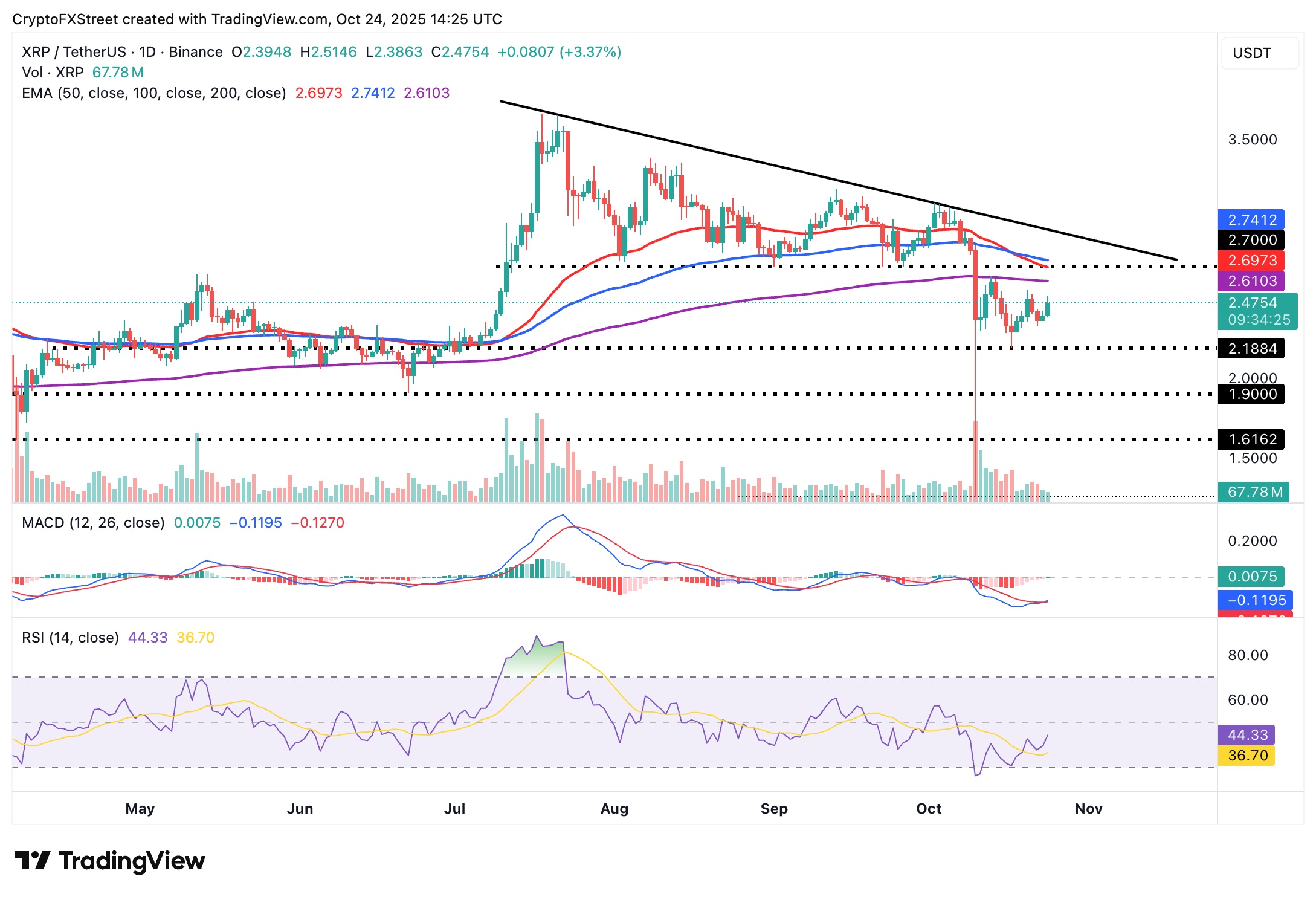 XRP đang giao dịch ở mức trên 2,45 đô la tại thời điểm viết bài vào thứ sáu, được hỗ trợ bởi tín hiệu mua từ chỉ báo Đường trung bình động hội tụ phân kỳ (MACD) trên biểu đồ hàng ngày.