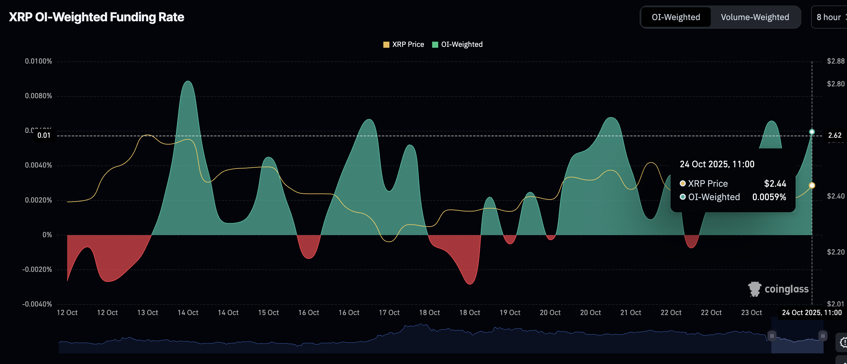 Tỷ lệ tài trợ theo trọng số OI của XRP | Nguồn: CoinGlass