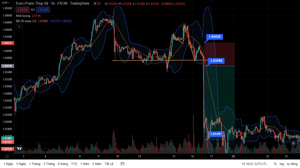 Giả sử cặp USD/CHF hiện đang giao dịch ở mức 1.0019. Bạn dự đoán là chỉ khi giá rơi xuống 0.9995 sẽ tiến hành bán ra và khi đó, thị trường có khả năng đảo chiều hoặc tiếp tục xu hướng giảm mới.