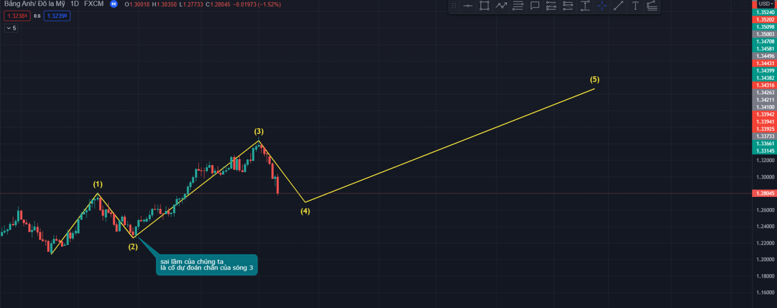 Bạn đang cố gắng vẽ và suy đoán ra sao cho đúng với lý thuyết của Elliott nhất có thể. Đừng cố dự đoán đường đi của giá khi không có cơ sở để sóng 3 hình thành ít nhất chúng ta phải thấy được sóng 1 và sóng 2. Tương tự để biết khi nào thị trường rơi vào điều chỉnh bạn cũng phải biết được khi nào sóng 5 kết thúc.