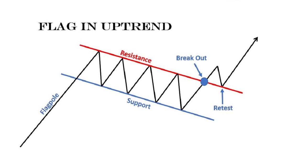 - Mô hình phẳng Flag: Là mô hình sóng Elliott di chuyển theo hướng nằm ngang với chiều dài các sóng bằng nhau. Sóng A và sóng C cùng chiều với nhau, ngược chiều với sóng B.