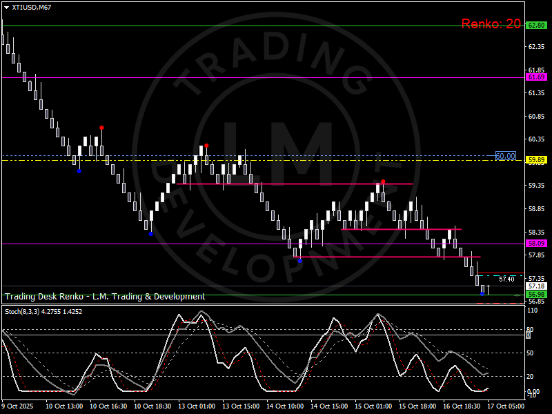 Cho đến khi giá xây dựng lại cấu trúc trên 60,00 đô la , tâm lý thị trường sẽ tiếp tục dao động giữa thận trọng chiến lược và mua vào theo cơ hội. Trên biểu đồ Renko, nhịp điệu đó rất rõ ràng từng viên gạch một, nhu cầu vẫn quyết định hướng đi hơn là niềm tin.