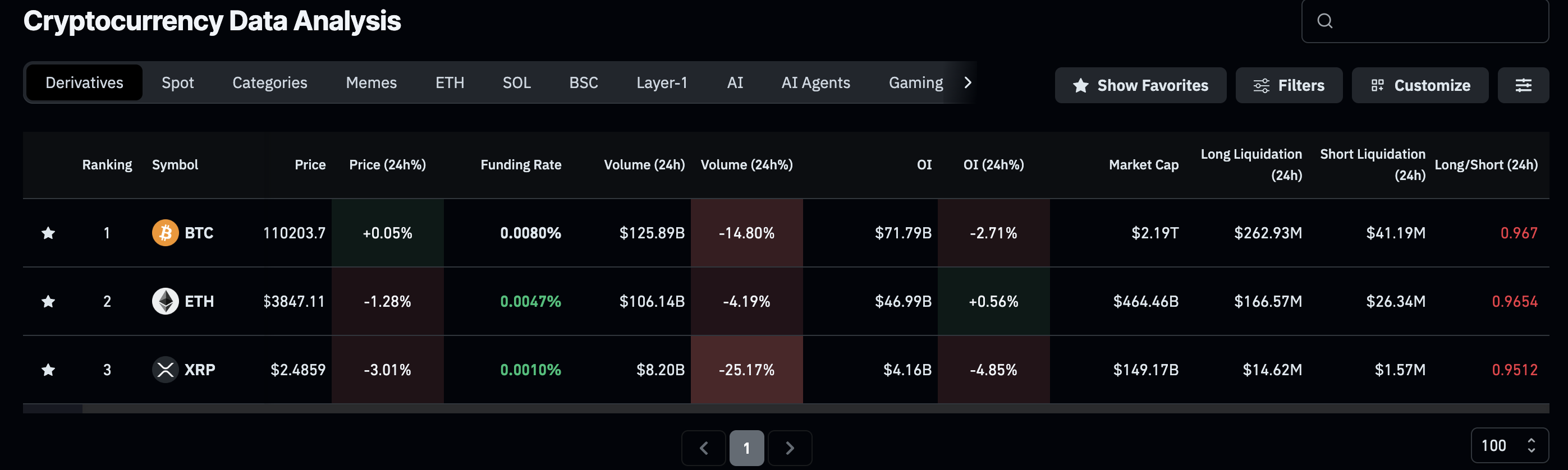 Dữ liệu phái sinh BTC, ETH và XRP. Nguồn: CoinGlass