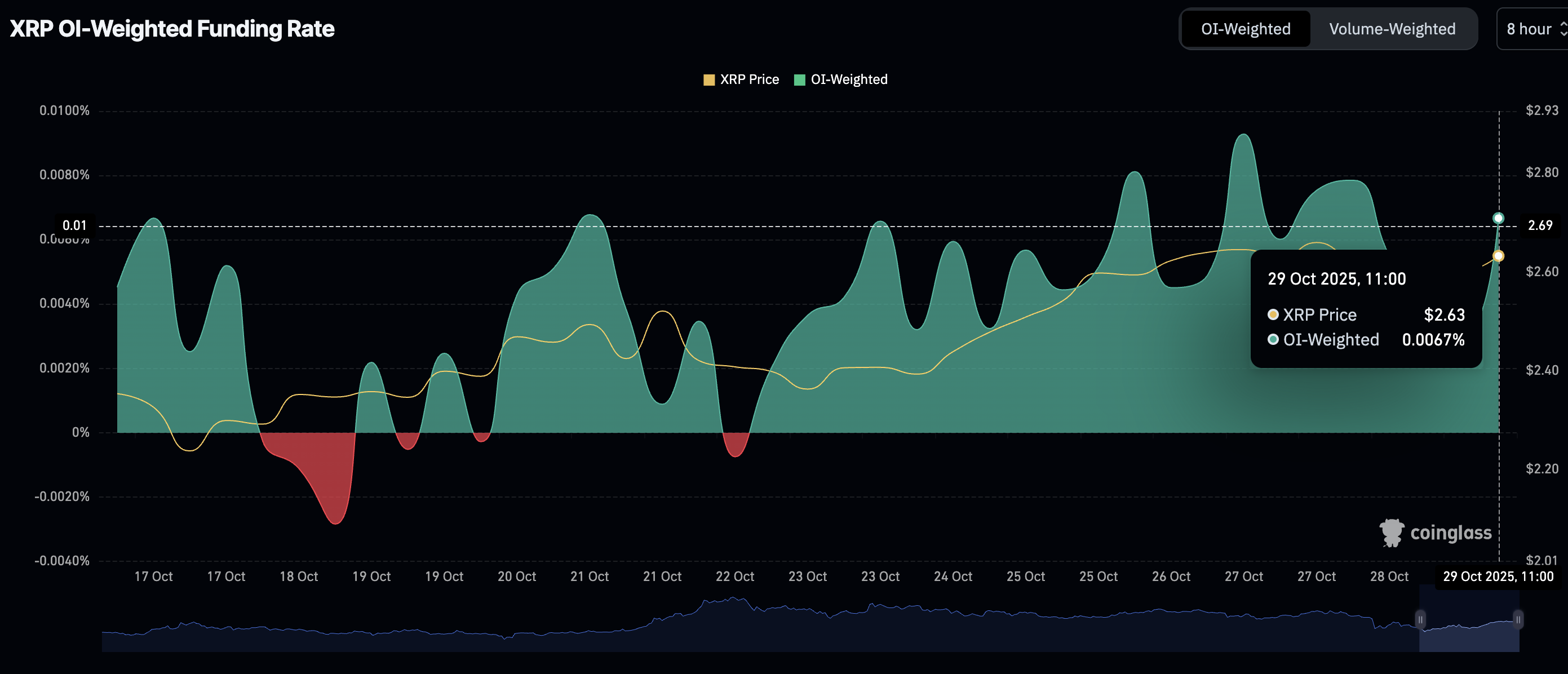 Tỷ lệ tài trợ theo trọng số OI của XRP | Nguồn: CoinGlass