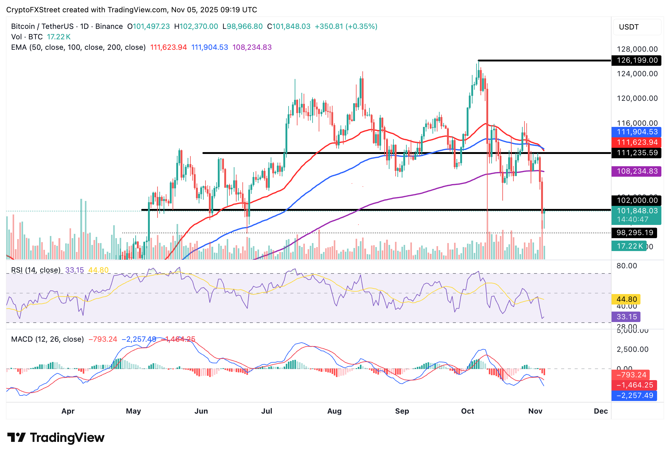 Tuy nhiên, các nhà giao dịch nên kiềm chế kỳ vọng tăng giá, dựa trên tín hiệu bán từ chỉ báo Phân kỳ Hội tụ Trung bình Động (MACD), vốn đã được thiết lập từ thứ Hai. Tín hiệu này xuất hiện khi đường màu xanh lam cắt xuống dưới đường tín hiệu màu đỏ, cho thấy tâm lý e ngại rủi ro và khuyến khích các nhà đầu tư giảm thiểu rủi ro. Một đợt giảm giá nữa xuống dưới ngưỡng quan trọng 100.000 đô la có thể đẩy Bitcoin lên mức tiếp theo là 98.295 đô la, mức giá đã được kiểm tra lần cuối vào tháng 6.