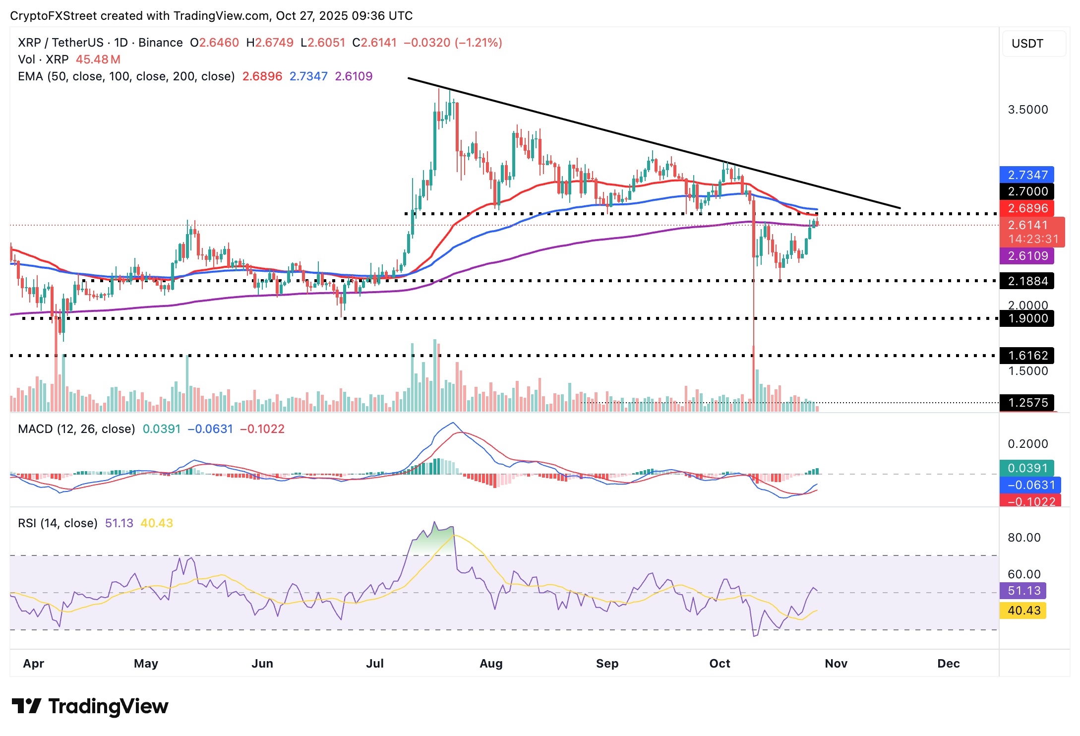 XRP đang giữ mức hỗ trợ trên 2,61 đô la tại thời điểm viết bài, cho thấy bức tranh kỹ thuật đang cải thiện và có khả năng duy trì xu hướng tăng ngắn hạn.