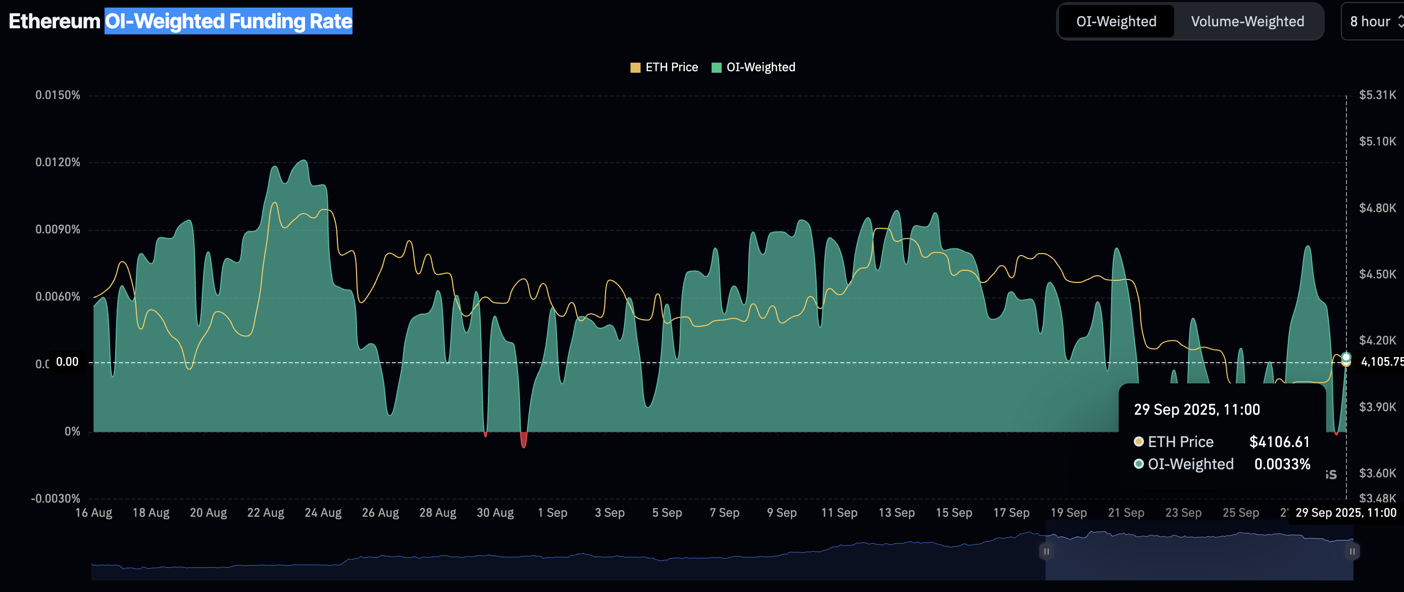 Ethereum đang trải qua biến động cực độ, với nhu cầu bán lẻ dao động. Theo dữ liệu của CoinGlass, Tỷ lệ Tài trợ Trọng số OI trung bình đạt 0,0033% vào thứ Hai sau khi giảm xuống -0,0001% vào Chủ nhật. Vào thứ Bảy, chỉ số này tăng vọt, đạt 0,0083%, cho thấy môi trường giao dịch cực kỳ biến động.