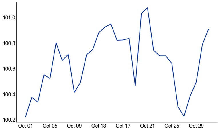 Tuy nhiên, ẩn sau vẻ ngoài thận trọng, vị thế lại cho thấy một câu chuyện khác. Các quỹ bán lẻ, vĩ mô toàn cầu và chỉ đầu tư dài hạn vẫn nắm giữ tỷ trọng cổ phiếu cao nhất trong hơn một năm qua. (theo Citadel). Họ đã dự đoán được đợt tăng giá cổ phiếu Santa Rally hai lần cắt giảm lãi suất của Fed đã được định giá, làn sóng thanh khoản đang dâng cao, và các kịch bản theo mùa khó có thể bỏ qua. Tháng 10 có thể là một tháng ám ảnh đối với cổ phiếu, nhưng lịch sử cho thấy những bóng ma Halloween thường đánh dấu mức thấp. Mức đáy của quý 4 thường được thiết lập vào khoảng ngày 26-27 tháng 10 (Chúc mừng Halloween), và từ đó, tiếng chuông xe trượt tuyết thường lấn át nỗi sợ hãi. (Chúc mừng Santa Rally)