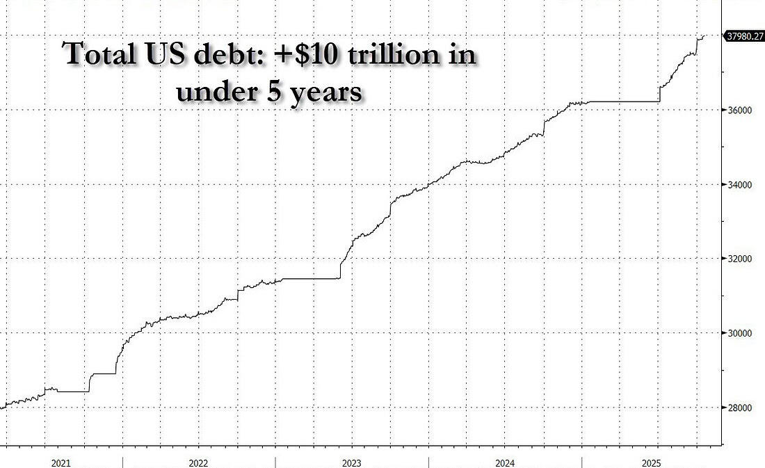 Nhưng đừng nhầm lẫn đây là sự kết thúc của "giao dịch hạ giá". Kịch bản vĩ mô vẫn không thay đổi - đống nợ của Washington đã phình to thêm mười nghìn tỷ đô la trong vòng chưa đầy năm năm. Kiểu tính toán đó không thể giải quyết được chỉ sau một đêm tồi tệ. Nếu có gì đó, thì sự thanh trừng của vàng là một sự định giá lại mạnh mẽ của đòn bẩy , chứ không phải niềm tin. Thị trường giấy đã sụp đổ; hệ thống niềm tin vẫn còn đó.