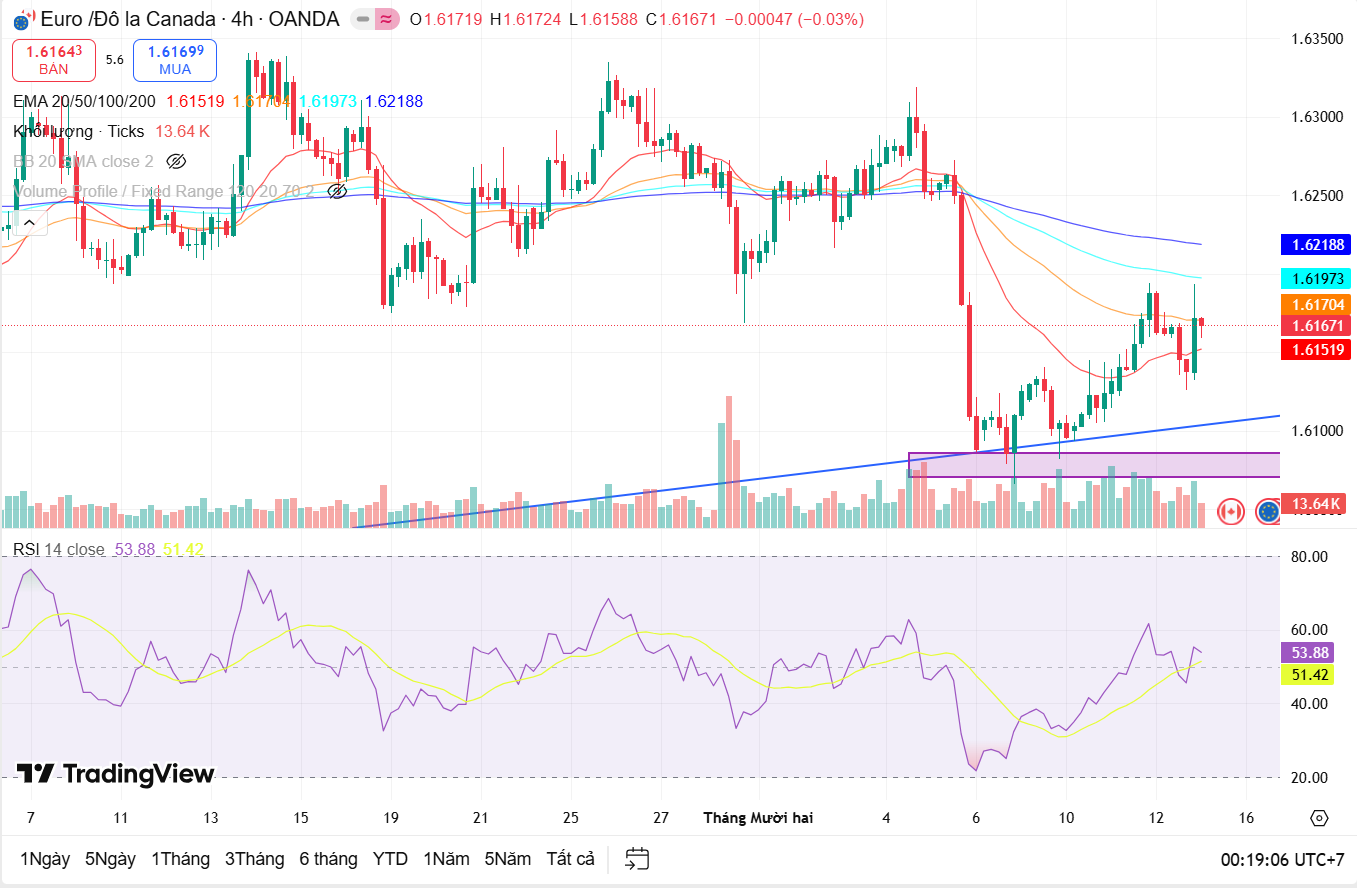 Trong tuần giao dịch từ ngày 8 đến 12/12, cặp EUR/CAD ghi nhận trạng thái điều chỉnh giảm trong xu hướng tăng trung – dài hạn. Sau giai đoạn tăng mạnh trước đó, áp lực chốt lời xuất hiện rõ rệt khi giá tiếp cận vùng cao, khiến EUR/CAD suy yếu và lùi về các vùng hỗ trợ quan trọng. Dù vậy, cấu trúc xu hướng tăng lớn vẫn chưa bị phá vỡ.