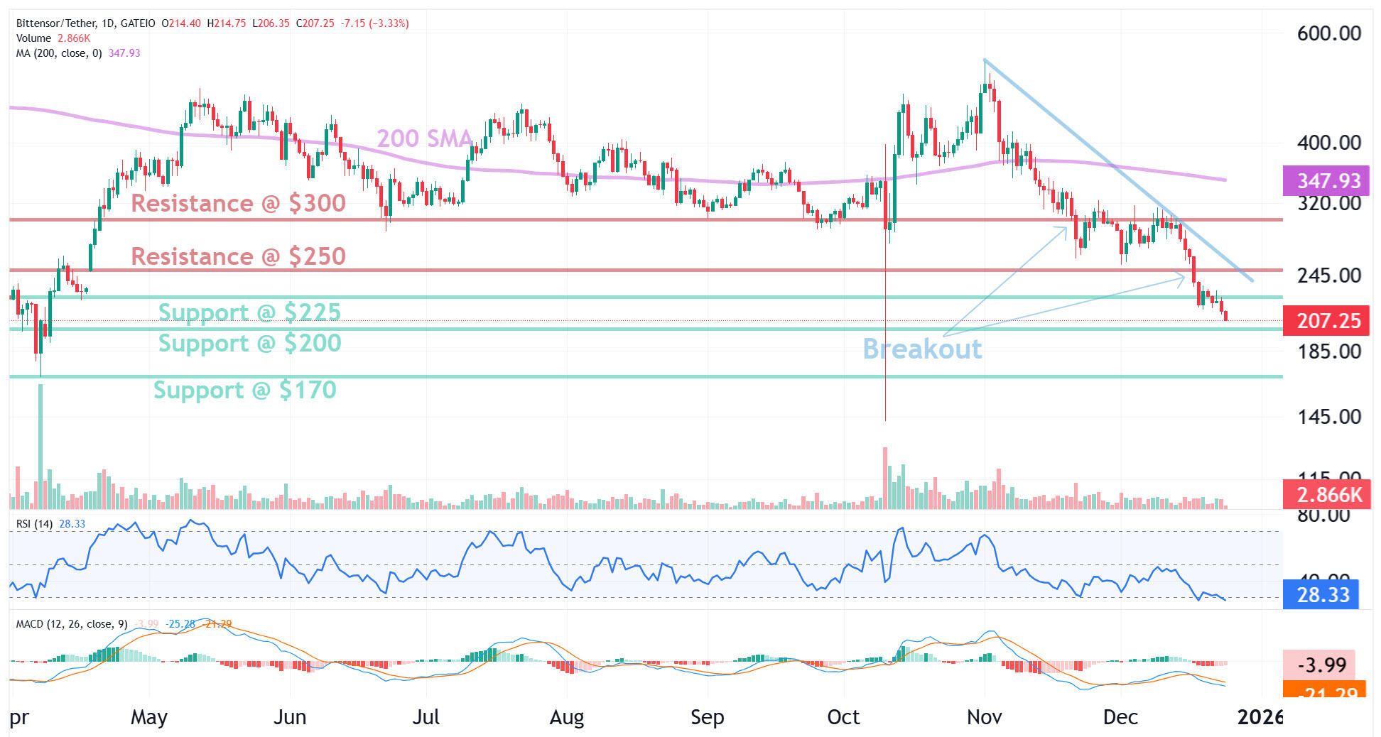 Bittensor (TAO) – Biểu đồ phân tích kỹ thuật