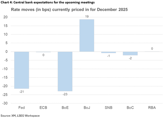 - RBA, BoC và SNB cũng họp; khả năng xảy ra bất ngờ tương đối thấp.
