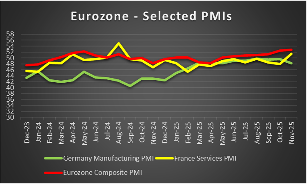 “Ở cấp độ vĩ mô, chúng tôi ghi nhận việc công bố số liệu PMI sơ bộ tháng 12 của Đức, Pháp và toàn khu vực Euro. Khả năng suy giảm hoạt động kinh tế có thể gây áp lực lên đồng EUR. Ở cấp độ tiền tệ, chúng tôi nhấn mạnh quyết định về lãi suất của Ngân hàng Trung ương châu Âu (ECB) và nếu ngân hàng này củng cố kỳ vọng của thị trường về việc duy trì lãi suất hiện tại trong thời gian dài hơn, chúng ta có thể thấy đồng EUR nhận được một số hỗ trợ.”