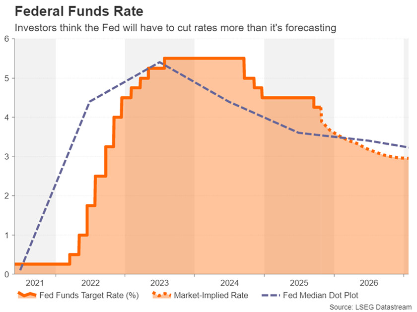 Hồi tháng 9, các thành viên FOMC đã dự kiến sẽ có thêm hai lần cắt giảm lãi suất nữa vào năm 2025 và một lần vào năm 2026. Xét theo những bình luận gần đây nhất từ các quan chức, bao gồm cả Chủ tịch Powell, có vẻ như quan điểm của họ không thay đổi nhiều. Mặc dù Fed rõ ràng đang lo ngại về thị trường lao động và đang theo dõi sát sao, nhưng họ coi việc cắt giảm lãi suất chỉ là một biện pháp phòng ngừa bất kỳ sự gia tăng thất nghiệp bất ngờ nào hơn là một bước đi chính sách cần thiết.